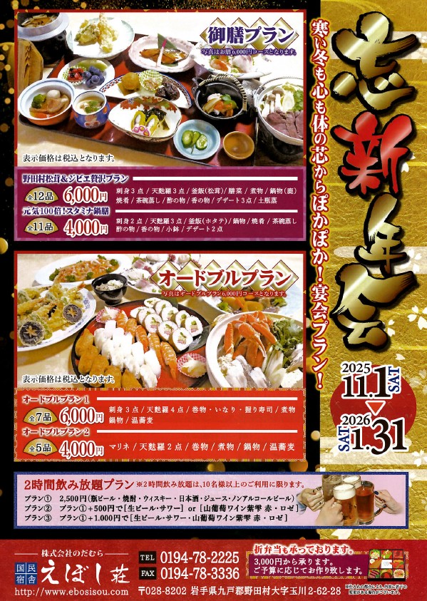 当館では今年も、「忘・新年会」のご予約承っております。