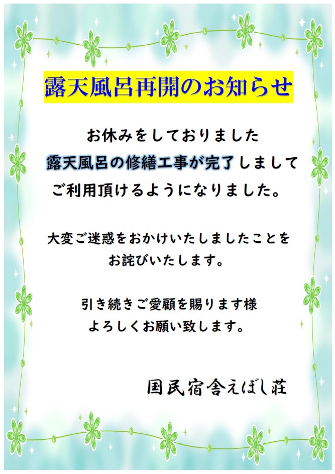 【おしらせ】ご宿泊料金の価格改定につきまして